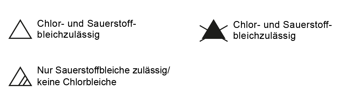 If an empty triangle is shown, the item of clothing can be treated with chlorine or oxygen bleach. If the triangle has two diagonal lines, the item may only be treated with oxygen bleach. If the triangle is filled in and crossed out, the textile must not be bleached under any circumstances!