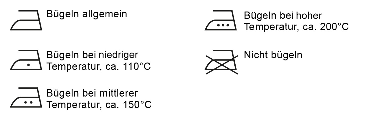 The "iron" symbol with up to three dots generally allows ironing, with the dots indicating the temperature range for control irons. Temperatures are assigned to the respective number of dots. An iron that is crossed out, however, prohibits ironing.