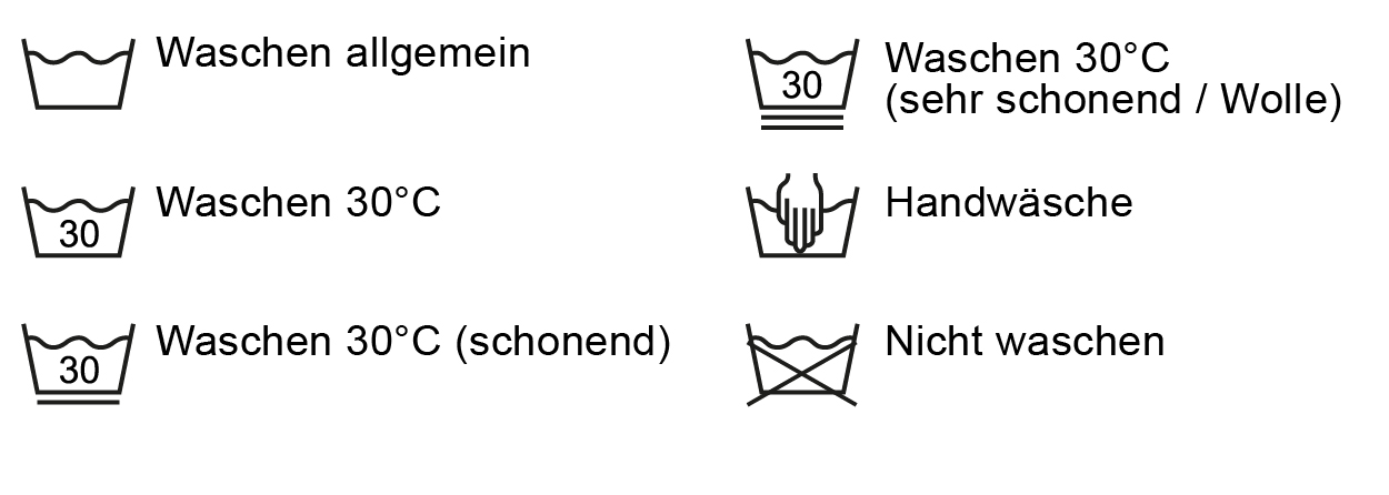 The wash tub is the basic symbol for the care instructions when washing. The number in the wash tub indicates the maximum temperature for the washing process. Be careful if there is one bar or two bars under the tub - this means a gentle wash cycle, two bars indicate a wool wash cycle.