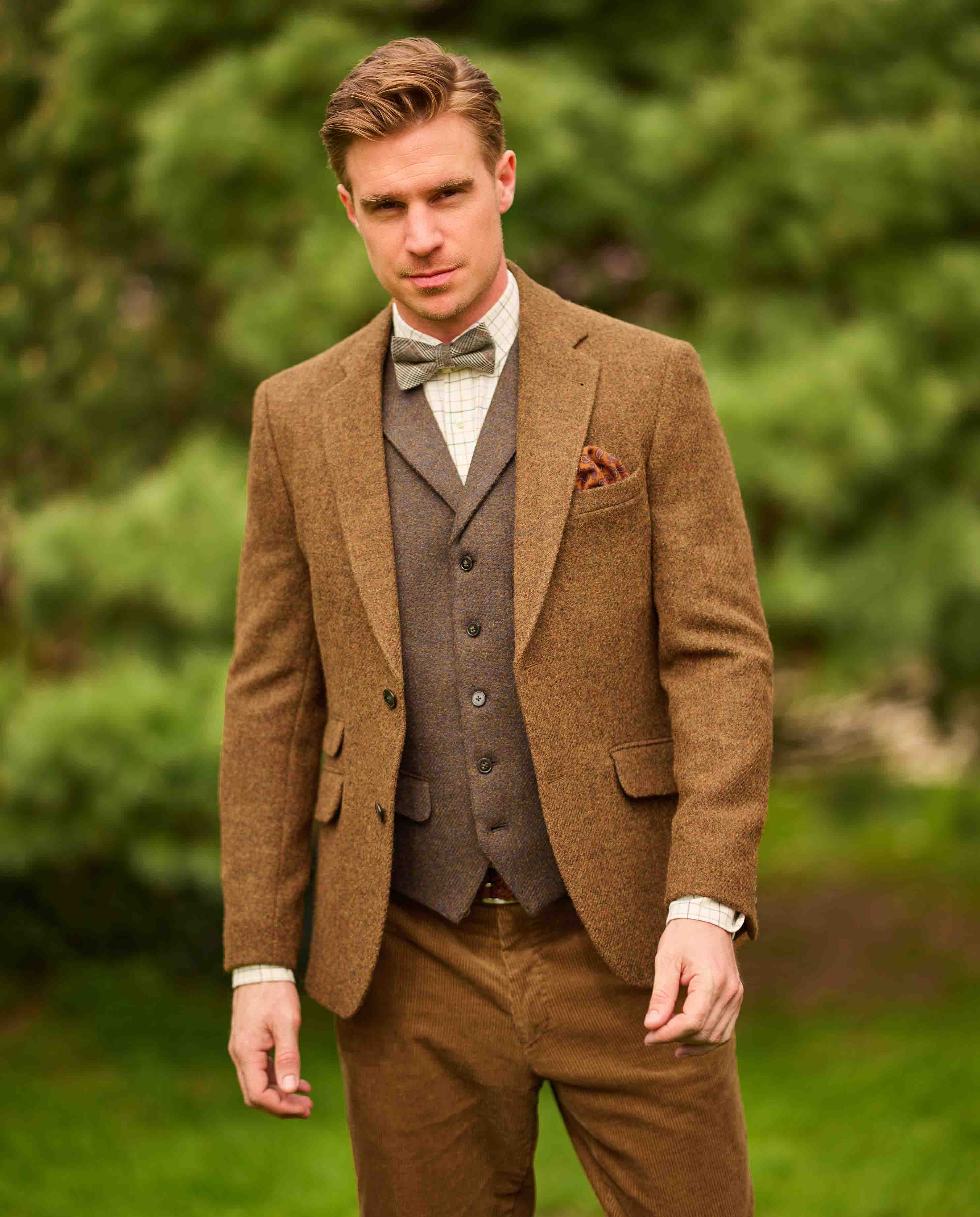 In der Welt der Hochzeitsmode steht Wellington of Bilmore für Tweed Hochzeitsanzüge, die den Bräutigam in einem unverwechselbaren Stil erstrahlen lassen. Der warme und luxuriöse Charakter von Tweed verleiht dem Hochzeitsanzug eine zeitlose Eleganz, die perfekt zu traditionellen Hochzeitszeremonien und modernen Feierlichkeiten passt. Die subtilen Muster und die erstklassige Verarbeitung machen diese Anzüge zu einem Symbol für Klasse und Raffinesse.